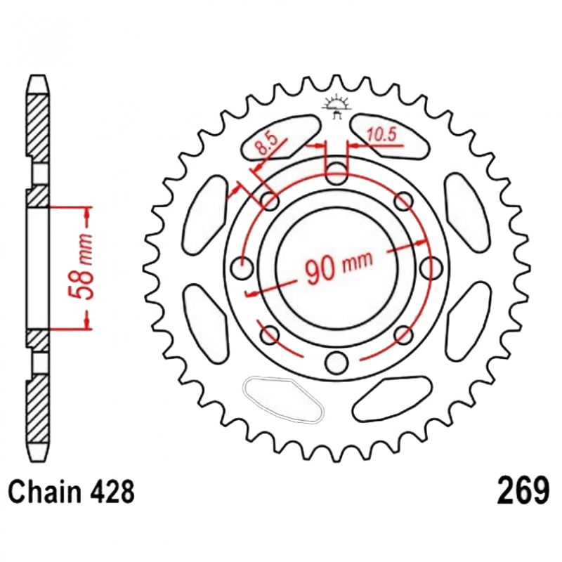 Corona 51 Denti Passo 428 Honda Nera