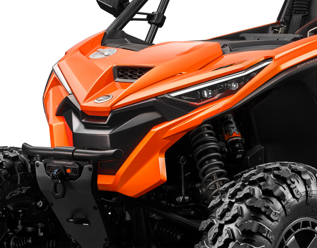 La griglia frontale, distintiva della famiglia ZFORCE, abbinata a fari dal design singolare e a un nuovo e robusto paraurti laterale, completa il look aggressivo e inconfondibile del veicolo. Particolari come il design esclusivo delle portiere, l'elegante tappo del serbatoio in alluminio, le protezioni del verricello in alluminio e gli innovativi cerchi in lega con pneumatici da 30 pollici, conferiscono allo Z10 un aspetto audace e moderno.