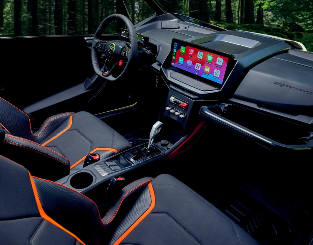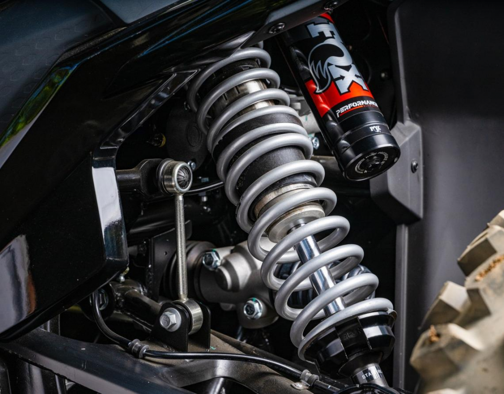 Il sistema di sospensioni permette regolazioni istantanee tra le impostazioni morbida, media e rigida. Progettato con il supporto di FOX Factory per prestazioni e comfort ottimali, offre un'escursione anteriore di 432 mm e posteriore di 508 mm. Un'impressionante altezza da terra di 356 mm consente di superare con facilità anche gli ostacoli più impegnativi.