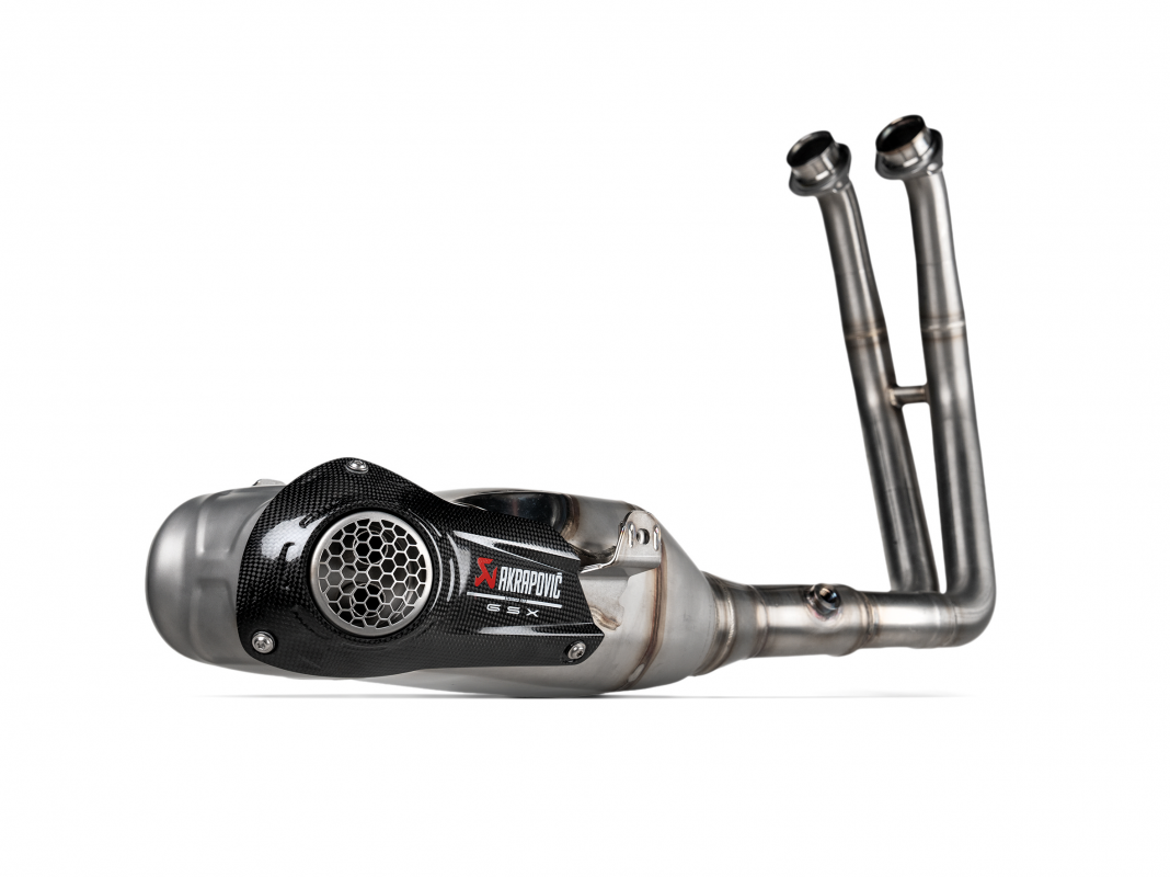 Lo scarico corto 2-in-1 contribuisce al look compatto della moto e a un sound sportivo, nel pieno rispetto della normativa Euro 5+ grazie al catalizzatore a doppio stadio.